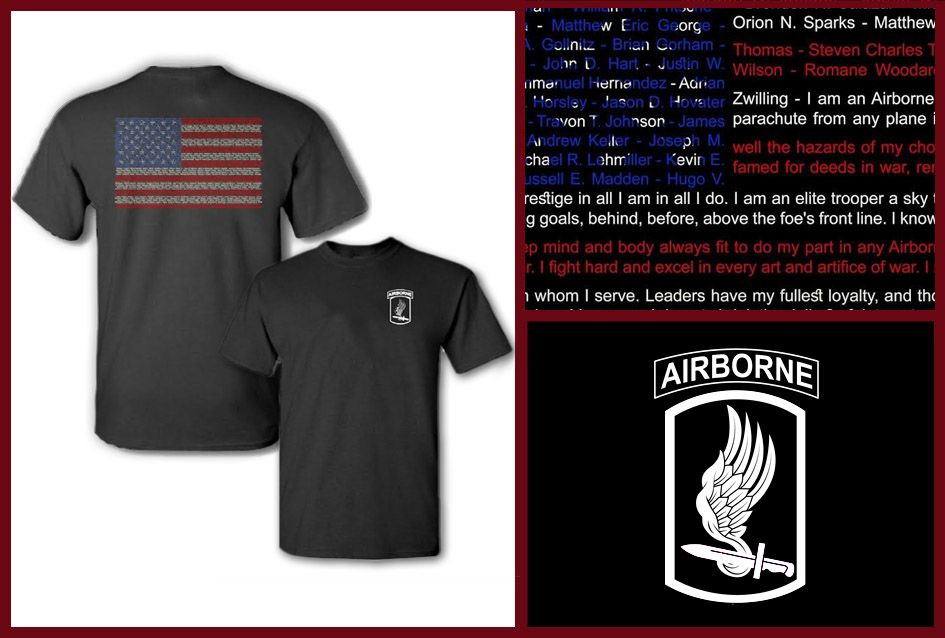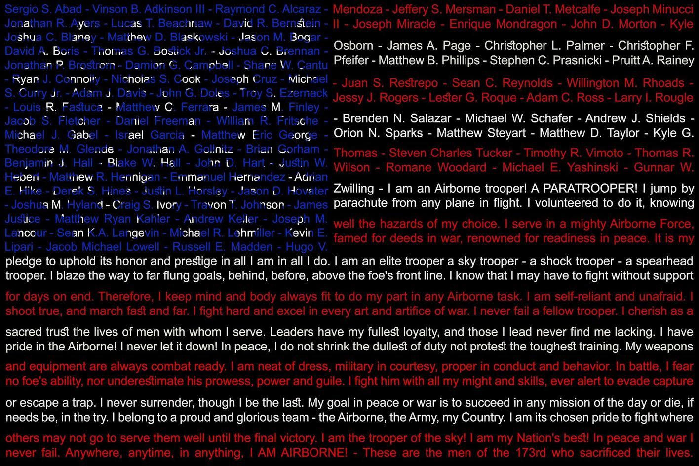 Every 173rd Airborne Soldier who has sacrificed for our country from 9/11/01 to now is listed on the flag. This is a great way to memorialize them and recognize their sacrifices.