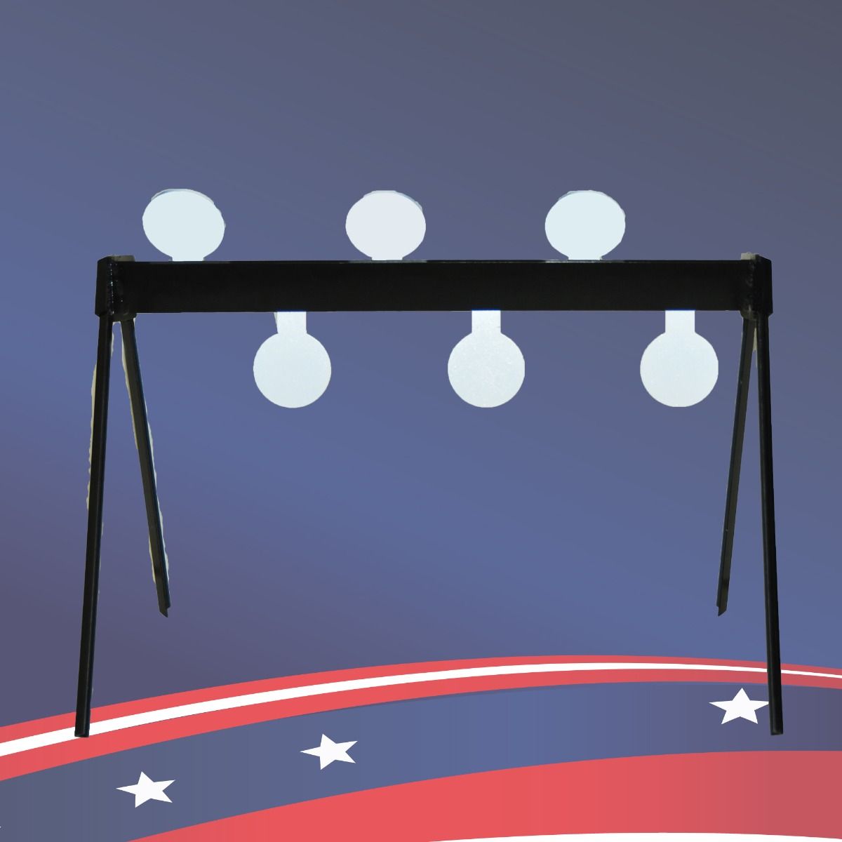 The .22 Caliber Plate Rack features six 4" diameter AR 500 Steel Targets, 1/4"thick. The AR500 Steel absorbs bullet impact without damage. Shoot targets down from top; Shoot them back up from the bottom! No manual reset required, just keep shooting. The angled deflector directs missed shots safely down to the ground. The legs are removable for ease of transport. Overall size: 34 w x 18 d x 24 h.