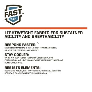- Fast-Tac™ 100% polyester ripstop fabric