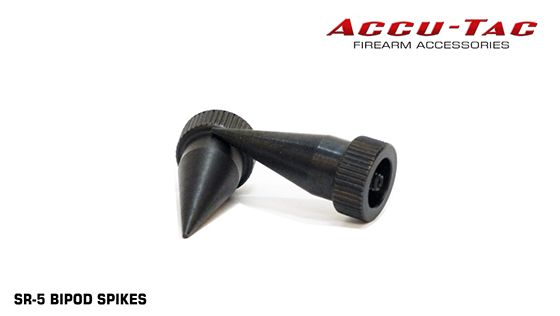 The Accu-Tac steel spikes are the perfect accessory for your bi-pod. They provide aggressive traction on dirt or any soft surfaces. They are CNC machined and black oxide treated. The replacement spikes have a simple screw on design for the SR-5 Bi-Pod that allows you to quickly change from rubber feet to steel spikes in seconds!