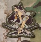 Pinup Girl with guns and armor Traditional woven style - highly detailed Size: 3.5 in x 3.75 in