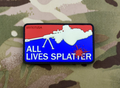 ALL LIVES SPLATTER 3D PVC morale patch with Glow-In-The-Dark elements. Measures 3.5" x 2" with VELCRO® Brand hook fastener and loop backing.