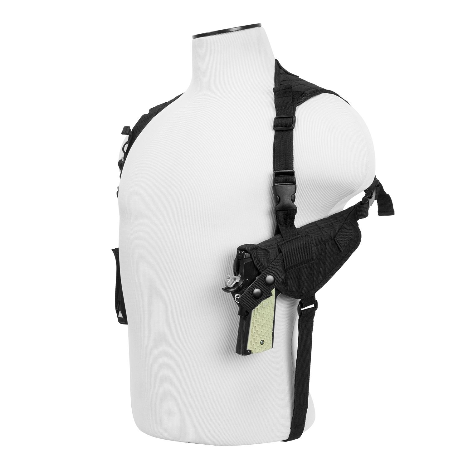 Ambidextrous Horizontal Shoulder Holster/Double Magazine Holder/Black