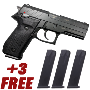 Arex's Rex Zero 1 pistol complies with strict military standards for reliability. Its frame is constructed of T7075 aluminum with steel locking block inserts and a hardcoat anodized finish. The nitrocarburized slide and cold hammer forged barrel are made from solid steel. The Rex Zero 1 has high profile white dot sights, ambidextrous safety, loaded chamber indicator, full length slide rails, and a large trigger guard for the use of gloves. This standard size model has a Black frame with black grips, a black slide, and a 17-round magazine capacity.