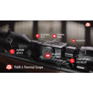 The Thor 4 640 is a smart HD thermal rifle scope that is powered by ATN's Obsidian IV dual core. It comes with 3 ultra sensitive next gen sensors including Black Hot, Color Mode, and White Hot. It can record video in 1280p resolution at 60 FPS and stream in 720p, so you don't miss another opportunity to capture that once in a lifetime moment. This scope is easy to mount with 30mm standard rings and it's easy to use with the zoom wheel and classical ergonomic buttons. Sighting in your Thor 4 with One Shot Zero easy; take a shot to adjust your reticle and you are ready to hunt. It also features a smart range finder that is fast and easy to make a good distance estimate to your target. This 640 model has a 1.5-15x magnification. It comes with some accessories including an eyecup, standard rings, L-Shape ring, UBS-C cable, scope cover and a lens tissue.