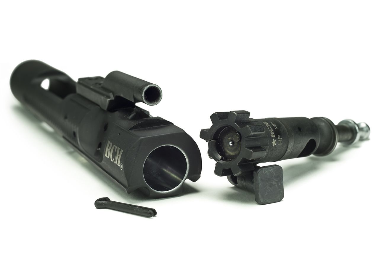 The bolt assembly is machined from the correct Mil-Spec Carpenter No. 158® steel, shot peened for increased strength, includes tool steel machined extractor and ejector, BCM Extractor Spring, and is HPT (High Pressure Tested) and MPI (Magnetic Particle Inspected).