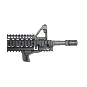 Designed to complement modern shooting grips, the Kinesthetic Angled Grip (KAG) uses a biomechanically efficient forward rake to create an interface for positive retention and joint relief to the wrist, elbow, and shoulder, allowing for smooth weapon manipulation without substantial increase to the girth of the weapon system. Textured on both front and back, the profile of the KAG creates a channel for consistent and positive engagement which translates directly into improved efficiency in weapons manipulation and target to target transitions.