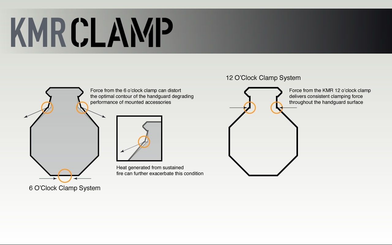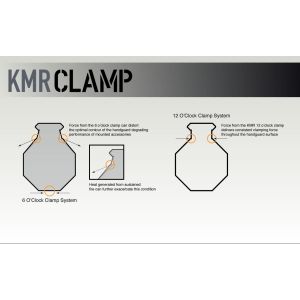 This proprietary patented mounting system (US Patent 8904691), includes a mechanical index to the 12:00 rail and positions mounting hardware to mitigate the movement caused by heat generated by the weapon system.
