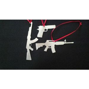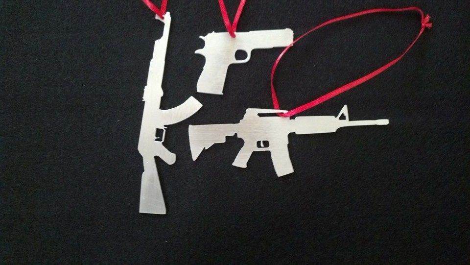 Billet Christmas Ornaments.. comes in a set of 3 an AR an AK and a 1911... made from American Aluminum and machined right here in the good old USA! Perfect gift for the gun aficionado!