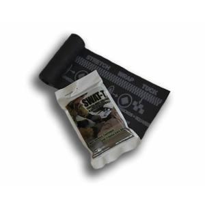 The SWAT-T™ can and should be used as a pressure dressing,when hemorrhage is to be controlled, or for venous and capillary oozing. Place your sterile dressing (or standard gauze) then wrap the SWAT-T around the extremity. You can then tuck or tape the end, which will maintain pressure on the wound (preventing further contamination and re-bleeding). If the endpoints are met on the dressing you may have a tourniquet and should check for good blood return in the extremity (pulse and capillary refill), or you risk the complications associated with all tourniquets. Pressure dressings should be left in place until definitive wound management can be accomplished.