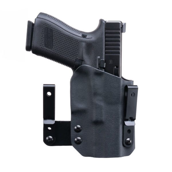 Easily configurable by loosening the screws on the IWB belt clip and sliding the clip in the channels to achieve the desired position