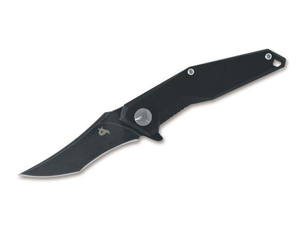 The Kravi by BlackFox combines a geometric, but comfortable handle with a blade shaped to be reminiscent of a predator's head. The blade of 440C steel has a two-phase grind with a slim tip and concave back edge. The blade opens quickly with a flipper and can be secured via linerlock. The G10 handle is equipped with a long clip with three screws.