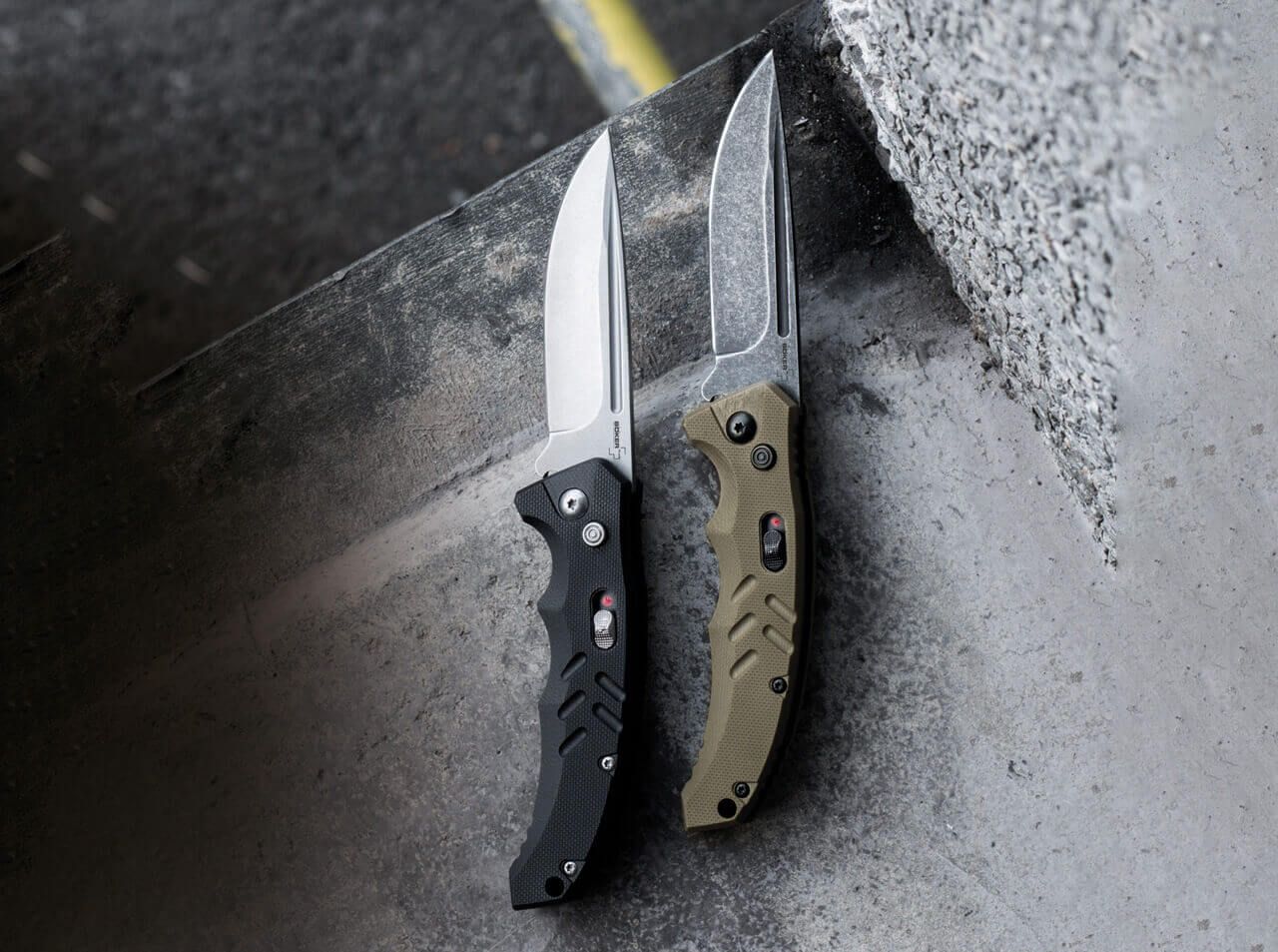 Designed as a tactical automatic knife, the Böker Plus Intention is not only convincing in the field, but also copes effortlessly with all the cutting tasks that arise in everyday life. Pressing the push button releases the dark stonewash blade made of D2, by the tension of the spring behind it, it then flips open automatically. A clean latching slide lock further secures the knife against accidental release. The ergonomically shaped handle is made of textured G10, ribbing in the area of the thumb rest and the pronounced finger recess further improve the hand position. With lanyard loop and clip (tip-down).