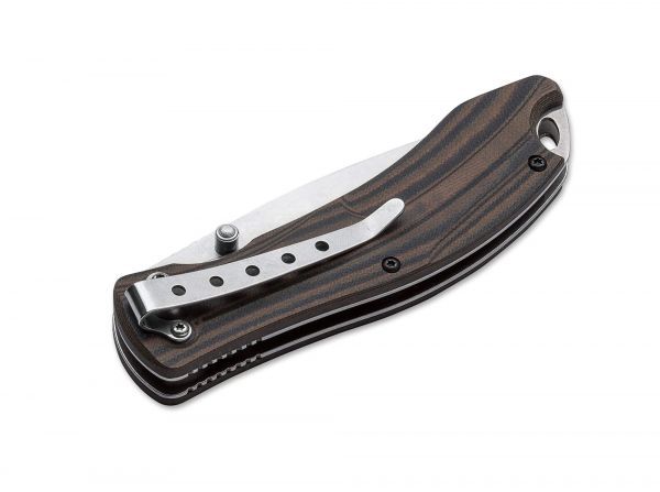 An exceedingly beautiful and practical folding knife. The fine satin finish on the 440A steel blade provides an attractive contrast to the dark, earth-tone G10handle plate, which features a perfect ergonomic design for tireless work. The liner lock prevents accidental folding up, and the lanyard hole protects the knife against loss.