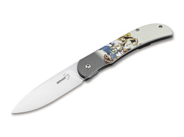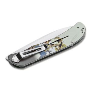 This unique version of the popular Exskelibur features high performance 440C blade steel, and synthetic handle scales adorned with Frank Frazetta's famous "Ghoul Queen" piece. Includes reversible pocket clip.