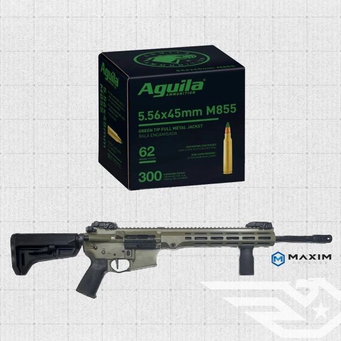 Bundle - 1 Box (300rds) Aguila 5.56NATO 62gr Green Tips and 1 Maxim MD15L AR15 Bazooka Green