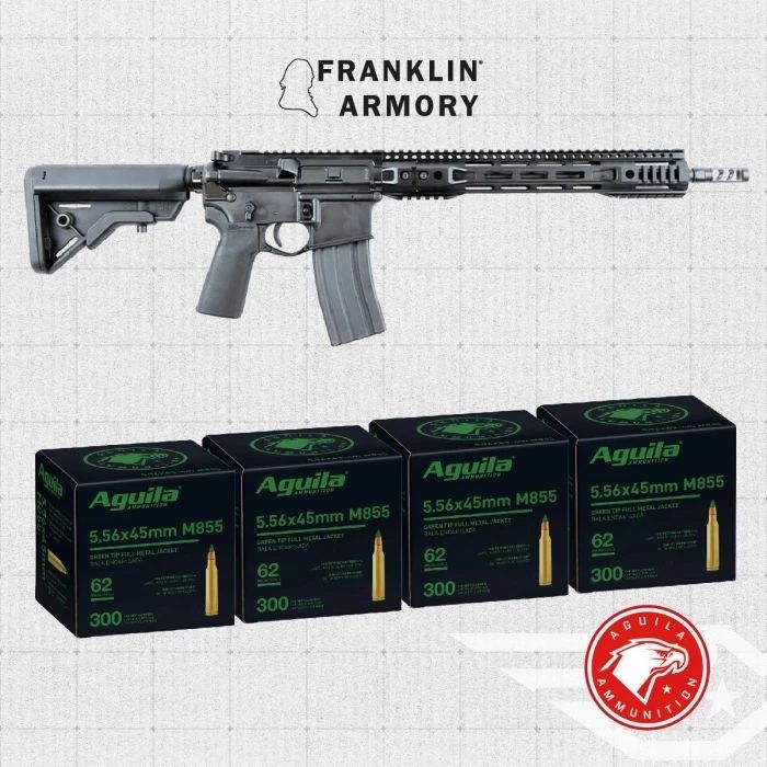 Bundle - 1 Case (1200rds) Aguila 5.56NATO 62gr Green Tips and 1 Franklin Armory M4-HTF R3 AR Rifle w/ BFSIII Trigger