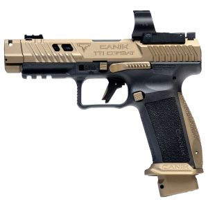 Taran Tactical Innovations and CANiK are proud to partner to bring you the CANiK TTI Combat. Built on a complete new polymer frame designed by Taran Butler, the TTI Combat brings a performance package to the CANiK lineup. Both internally and externally, the TTI Combat delivers aggressive grip texturing; a ported and fluted barrel; CANiK compensator; a diamond cut, flat-face, 90 degree break trigger; optics cut that allows for a low profile seating of the MECANIK line of optics as well as the Trijicon SRO and others. Includes- MaCanik M03 Competition Red Dot, +3 magazine base pads, two magazines, custom holster, travel hard case and a collaboration coin.