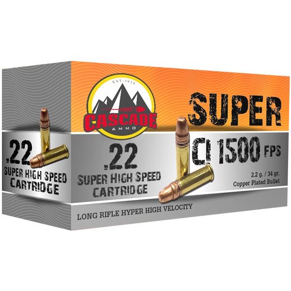 Cascade Super .22 LR Rimfire Ammunition fires copper-plated 34-gr. bullets at a blistering 1,500 fps. Cascade Cartridge International has been loading rimfire ammunition in Mexico since 1959. Quality components and reliable performance.