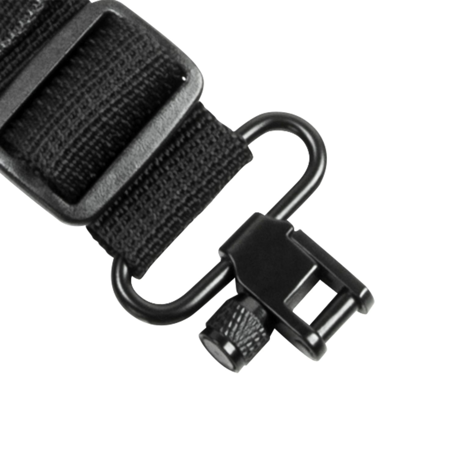- To Unlock, unscrew out the knurled thumb nut, push in and rotate side arm 90 degrees to open sling swivel mount.