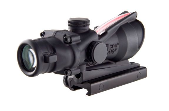 The 4x32 ACOG scope provides a dual-illuminated reticle using fiber optics and tritium for a bright aiming point in any light condition. The ranging reticle allows for bullet drop compensation out to 600 meters without any manual adjustments.