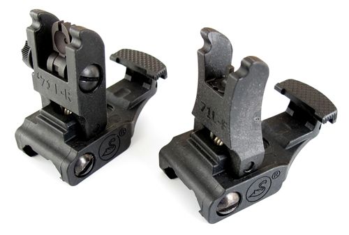 Both are made from durable, metal-reinforced polymer and are a good option when seeking a quality sight. The apertures on the rear sight are real steel and not subject to distortion like thin plastic types. Both are .600" when in the folded position, from the top of the receiver. Both #71 Front and Rear Sights are designed to allow attachment to all universal dovetail rails.
