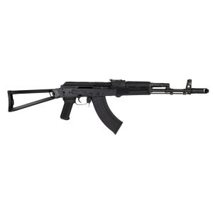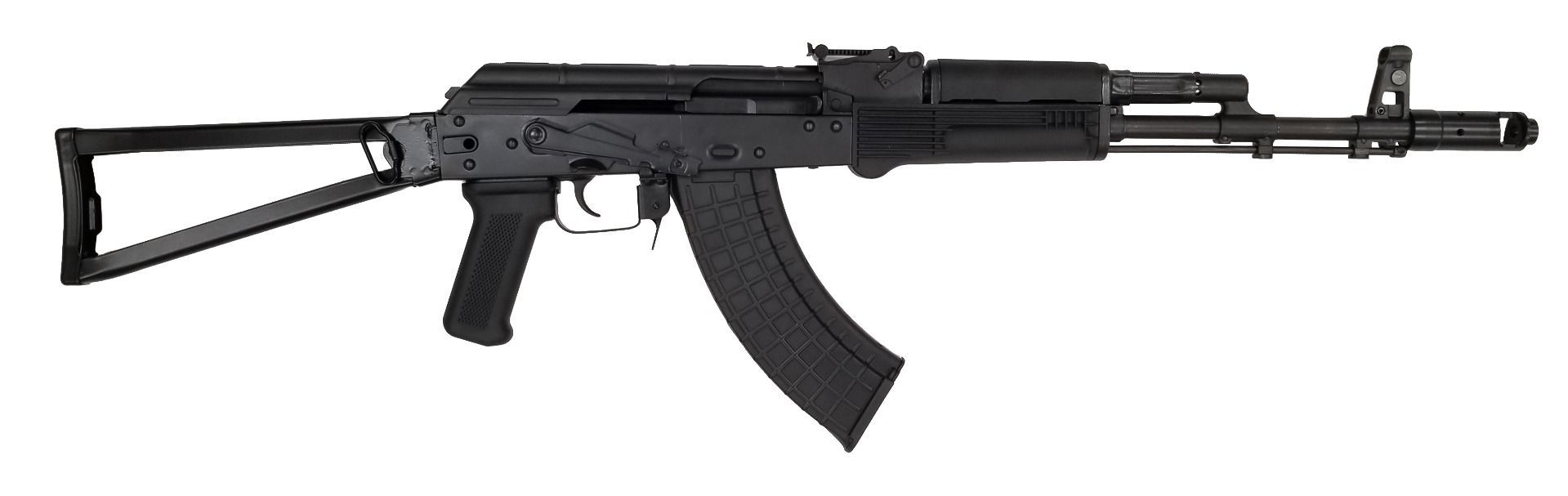 This is our black polymer version of the American made classical Ak-47 rifle (7.62x39mm) with an aesthetic furniture twist and measures 35.25” in overall length. See below for rifle characteristics: Technical Specifications Polymer MIL-Spec upper & lower hand guards with heat shield, and pistol grip, Folding Stock Black oxide finish Fully Heat-Treated, Mil-spec stamped Receiver 4150 Nitride Barrel (16.25” length), 14×1 LH thread FORGED Trunion, bolt and carrier Machined scope mount side rail Front and rear sight (both adjustable) Bolt hold open Safety Lever Bayonet Lug Extended magazine release Magazine Capacity: 30 Cleaning Rod Semi-automatic closed-bolt action Caliber: 7.62 x 39 mm Range: 350 yds (effective), 1000 yds (Max)More Information