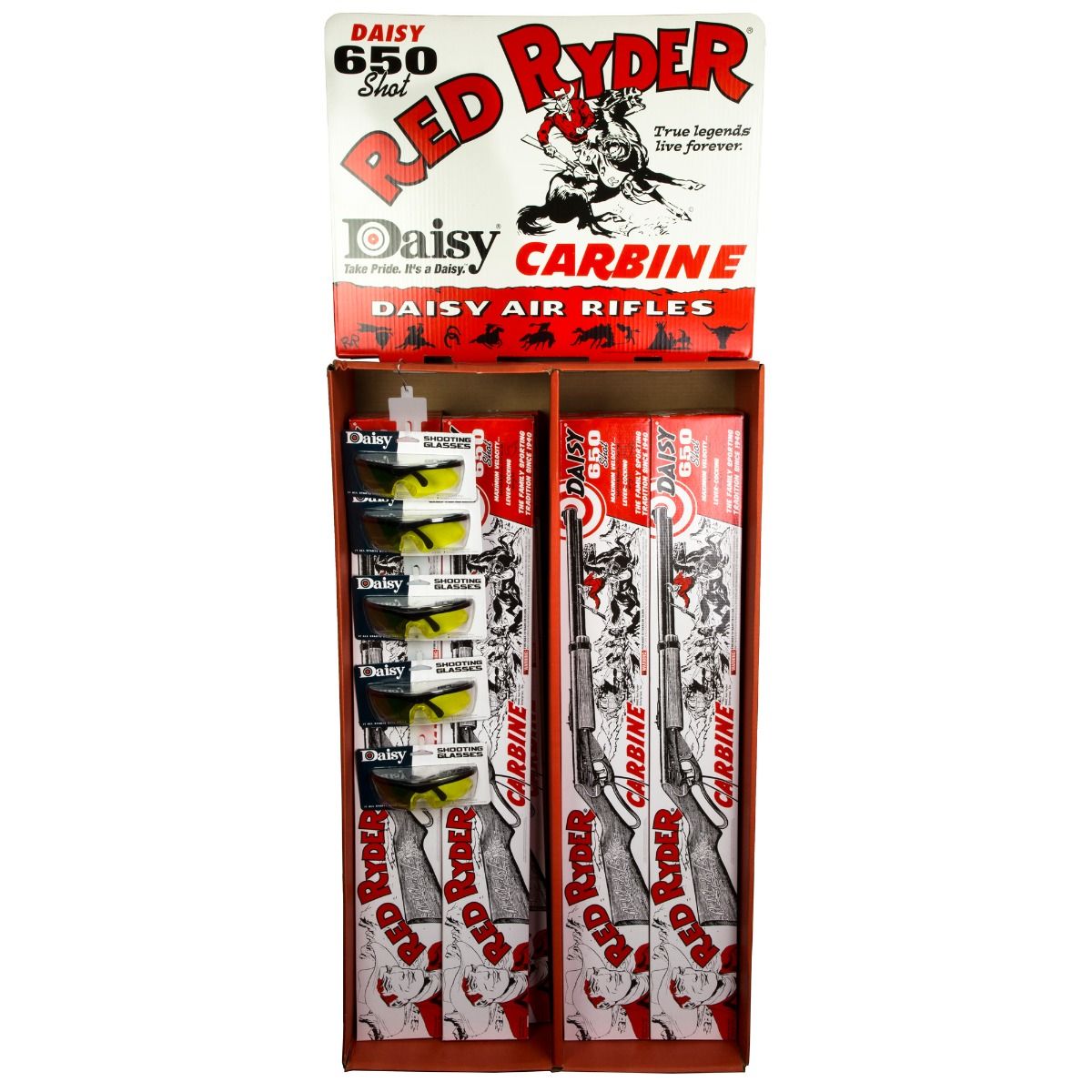 The Daisy Red Ryder BB Gun has been the all-time favorite BB gun for generations. The Red Ryder is the classic lever action. This Display comes with (12) 1938 Red Ryder Air Rifles, (12) 250ct BB Tubes, (12) Pairs of Shooting Glasses