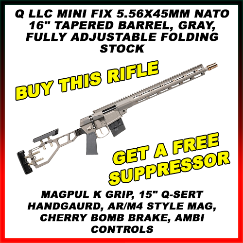 Q LLC Mini Fix 5.56x45mm NATO 16" Tapered Barrel, Gray, Fully Adjustable Folding Stock, Magpul K Grip, 15" Q-Sert Handgaurd, AR/M4 Style Mag, Cherry Bomb Brake, Ambi Controls