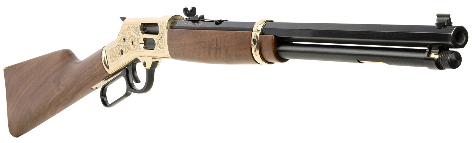 Henry Side Gate Deluxe 45 Colt (LC) 10+1 20" Blued Octagon Barrel, Engraved Polished Brass Rec, Semi-Fancy American Walnut Stock, Adj. Sight