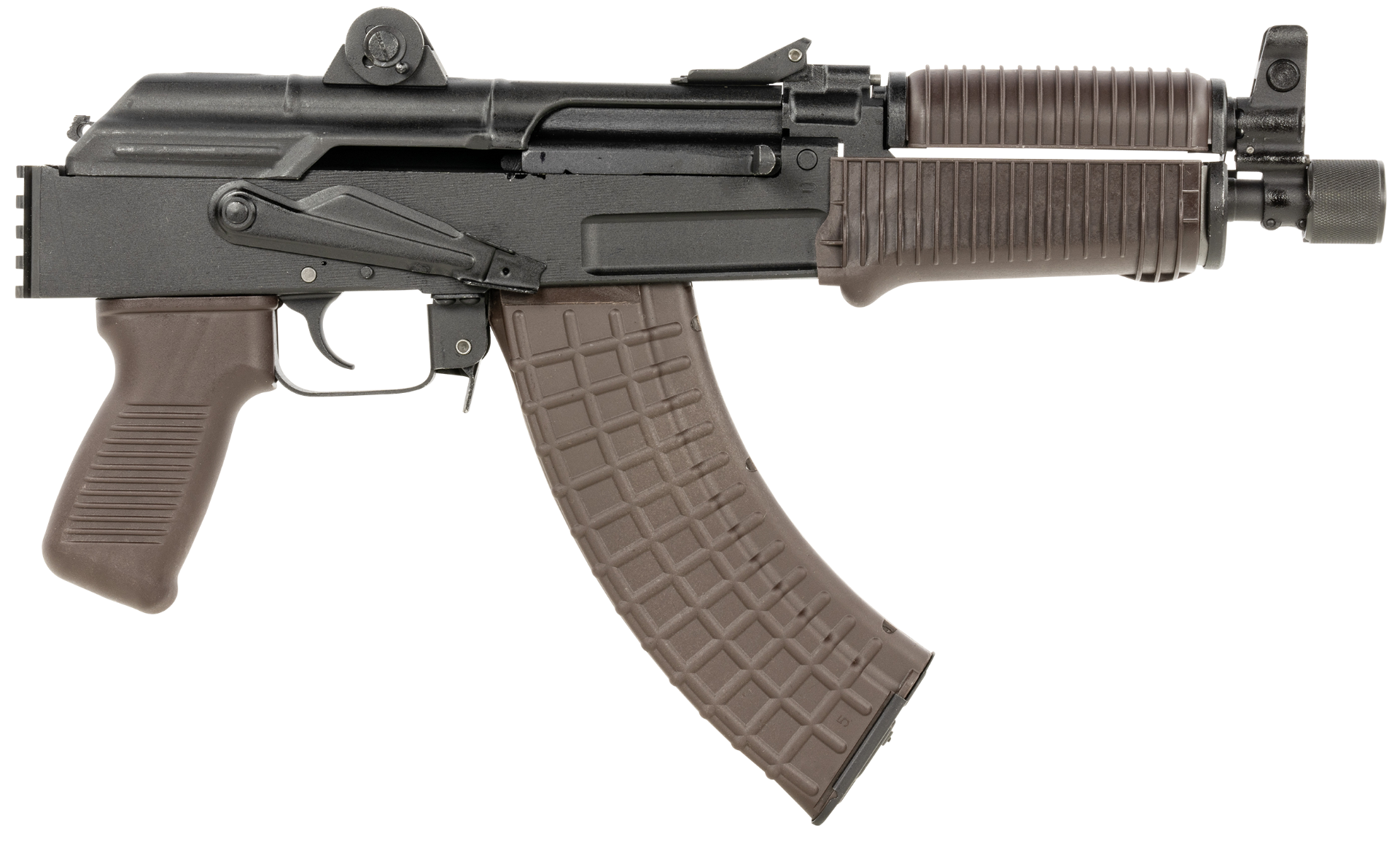 Sports south exclusive.The sam7k pistol is ideal for sport shooting, self-defense and for pistol hunting.The sam7k pistol receiver is milled from a hot-die hammer forged receiver blank by the arsenal co.Of bulgaria.The arsenal sam7k-56 features the sam7k 7.62x39mm milled receiver ak47 pistol with plum us made furniture.Includes one 10rd & one 30rd circle 10 magazine, rear picatinny rail, qd sling swivel, scope rail, oil bottle, cleaning rod and cleaning kit with arsenal hard custom case.