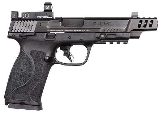 The m&p m2.0 bundle gives you a 10mm auto pistol and a vortex venom.The m2.0 features a ported barrel reducing muzzle flip and perceived recoil allowing for quick follow-up shots; tall night sights; extended, rigid, embedded stainless steel chassis in grip frame to reduce flex and torque when firing; takedown lever and sear deactivation systems allow for disassembly without pulling the trigger; flat trigger will give you consistency in your pull; optic ready slide; 1 in 10" twist; enhanced grip texture allows the user to manage recoil, keep a firm grip and delivers comfort when concealing and an armornite durable corrosion resistant finish.The vortex venom features 1x magnification, adjustable w&e, weaver/picatinny mounting and parallax free.Includes two magazines and four interchangeable palmswell grip inserts for optimal hand fit and trigger reach.
