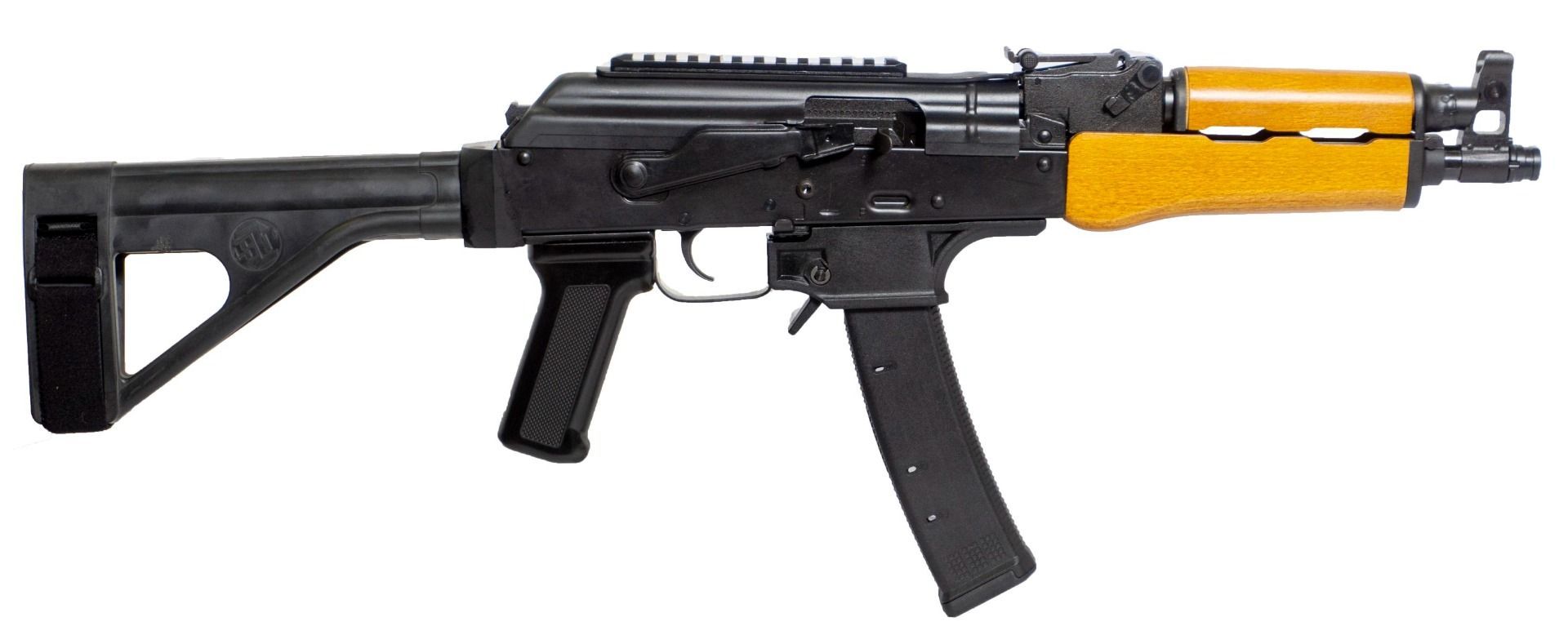 Your favorite AK pistol is now available in 9mm! The Draco 9S, chambered in 9mm, is compatible with EV9 Scorpion magazines and comes with one Magpul PMAG 35 EV9 Scorpion magazine. This pistol features an 11.14” barrel length, a hinged dust cover with a Picatinny optics rail, and an original Romanian barrel chambered in 9x19mm. It also includes a premium wood handguard and a hinged dust cover for added versatility.