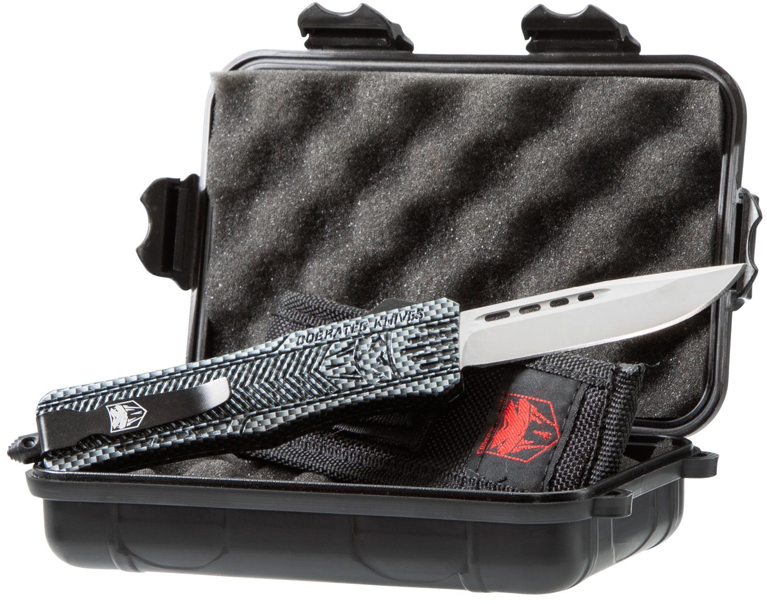 CobraTec Knives CTK-1 Medium 3" OTF Drop Point Plain D2 Steel Blade/Carbon Fiber Aluminum Handle Features Glass Breaker Includes Pocket Clip