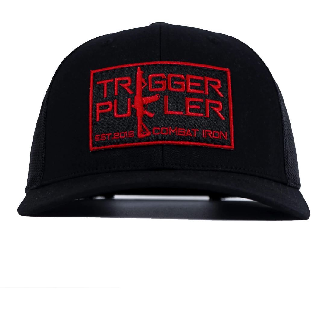 Represent the trigger pullers of the world with Combat Iron Apparel's Mid-Profile Mesh Snapback Hat. This hat features a red patch with the trigger puller logo, making it the perfect accessory for gun enthusiasts and shooters. Shop now and show your support for the trigger puller community.