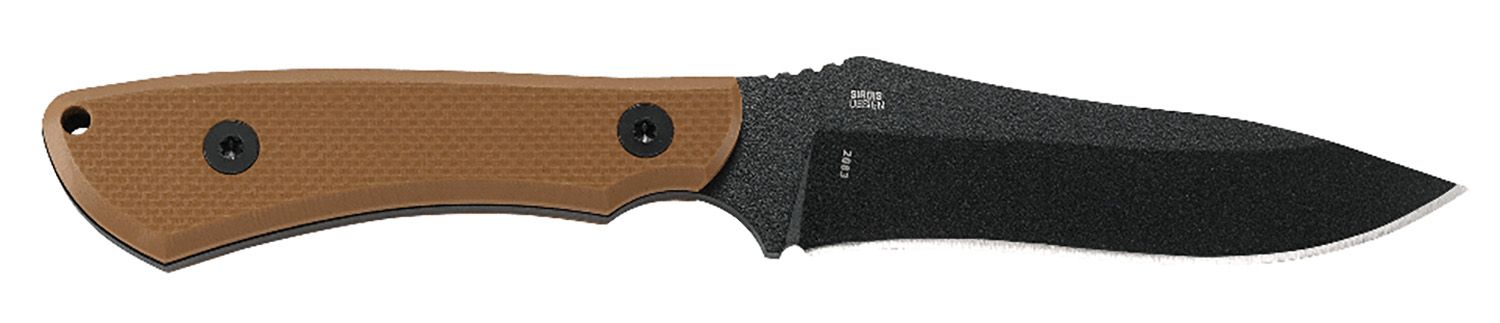 Designed by retired Sergeant Major Darrin William Sirois, the Ramadi is the dependable, tactical carry that's sure to have your back. Sleek and strong, this knife knows how to navigate every mission at hand. Features SK-5 carbon steel, full tang provides strength, black coating improves corrosion resistance, friction grooves for grip and G10 handle provides grip in all conditions. Includes sheath.