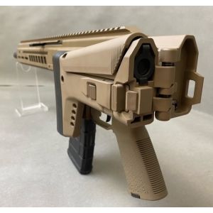 This 5.56 rifle operates with 3/8 Piston Mid/Rifle length Gas system for ultimate reliability and durability while allowing the gun to run clean with limited amount of carbon in the action. No buffer tube required to function the rifle therefore we have fitted this rifle with an ACR style folding stock. The Charging handle is in a forward position non- reciprocating and Ambidextrous for preference.