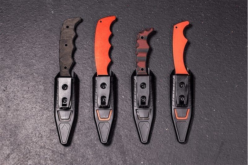 We would argue that this is the most versatile, low profile, rivet-less, and minimalistic blade sheath on the market. The sheath works as a system allowing you to fit ALL of our blades and in either grip configuration.