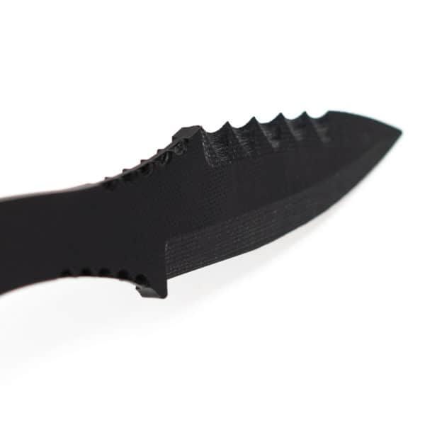 The RZG-10 Blade was designed for on and off-duty use in situations where a metallic signature is not wanted. It was inspired by Warriors through their collective experience in close quarters battle and combatives. The blade is cut from the highest quality G-10, an extremely durable polymer that leaves no metallic signature. The overall slicing edge is 3.25″ with an overall length of 7.25″. Its customized and sculpted shape is a perfect fit for both reverse and forward grip fighting. The RZG-10 Blade’s compact grip is ideal for concealment or smaller hands. For added grip, jimping was placed on the thumb ramp, under the hilt, and on the pommel. The RZG-10 Blade is an easily concealable combative blade that transitions seamlessly to a professional working environment.