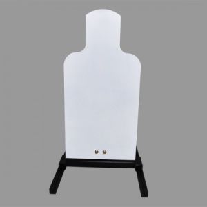 40" h x 19.5" w E-Type torso target mounted to the heavy duty Auto Reset base assembly.