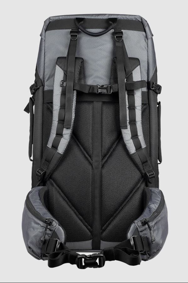 - S-shaped backpack straps, sternum strap, and molded carry handle