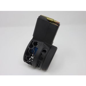 AR 15 223/556 50 round skeletonized HEX pattern drum magazine made from Billet 6061. F5 MFG is the OEM of this line of drums and this is the latest revision, with an improved feeding system that provides greater reliability.