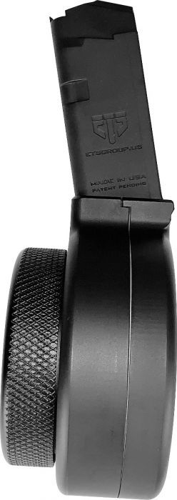 50 round Drum Magazine for Glock pattern AR 9. Made of billet machined aluminum.