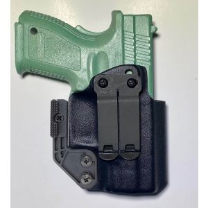This holster allows for maximum concealment. The DCC Monoblock belt clip which allows for belt and belt less carry, as well as a Mod Wing which allows the user to adjust the block height to pull the handle of the gun into the body. 2 points of adjustable retention, as well as an open bottom to accept threaded barrels.
