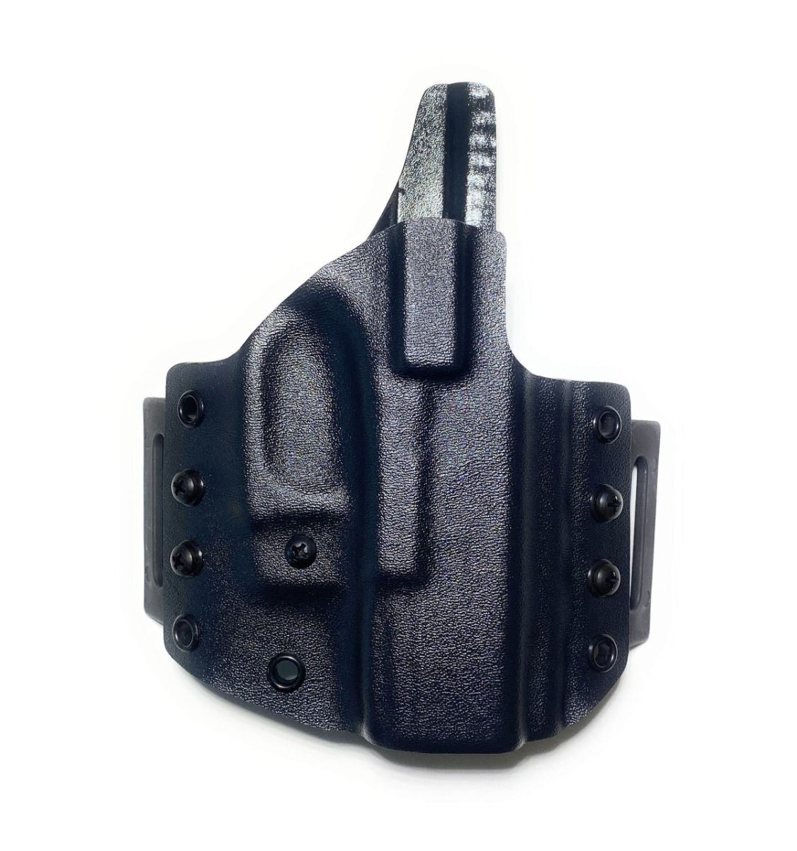 These Outside the Waistband holster with adjustable retention & 2 points of adjustable retention with light bearing holsters. These holster are curved to contour against the body and make great OWB concealed holsters as well.