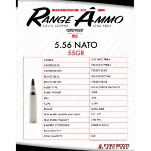 Fort Scott 5.56 NATO 55gr Lead Free Solid Copper Flat Nose Range Ammo - 500rd Case