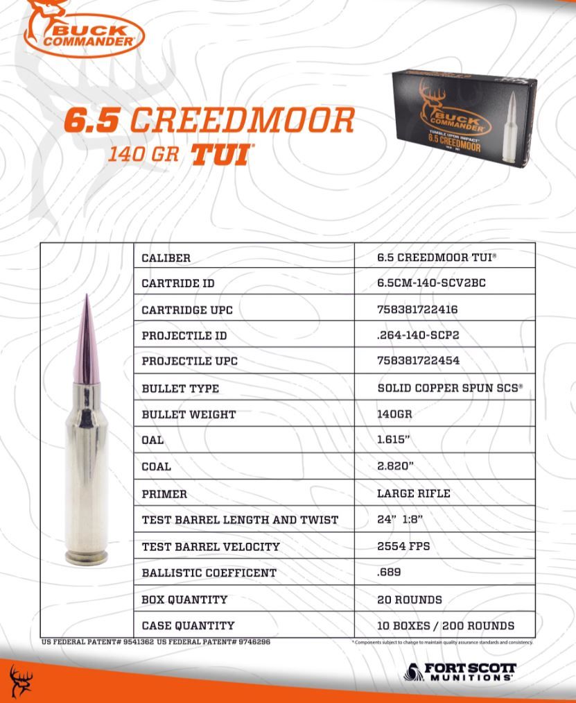 Fort Scott Buck Commander 6.5 Creedmoor SCS TUI 140gr 20rd Box