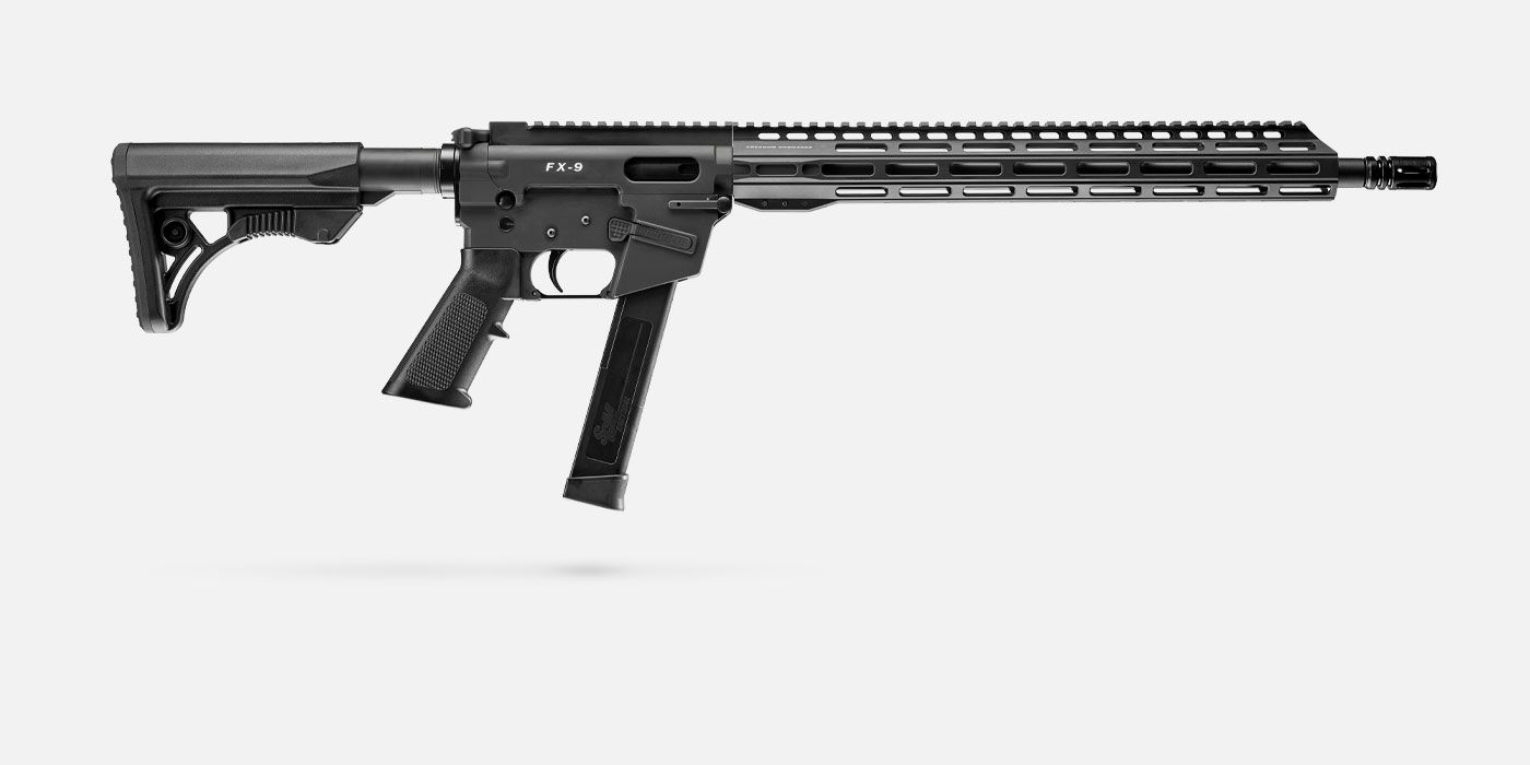 Three barrel lengths. Modular design that is AR-15 configured and compatible lets you create the exact build for your next mission. One-hundred percent made in the USA. This is freedom to the extreme. Attention to every detail is what led us to deliver a pistol caliber carbine platform that is reliable, affordable, and has a familiar set of operating controls for any AR-15 user. The FX-9 is billet machined aluminum with hardened steel QPQ nitride components for extended wear and corrosion resistance. Each firearm comes with an M-Lok rail system and Faux Suppressor muzzle device. Depending on the barrel length our pistol-caliber carbines can give you more maneuverability in tight spaces. You also gain lower recoil, which provides you with faster target acquisition. A pistol-caliber carbine also provides more stability than a handgun. All of this makes a pistol-caliber carbine ideal for home defense or as a dedicated truck gun.