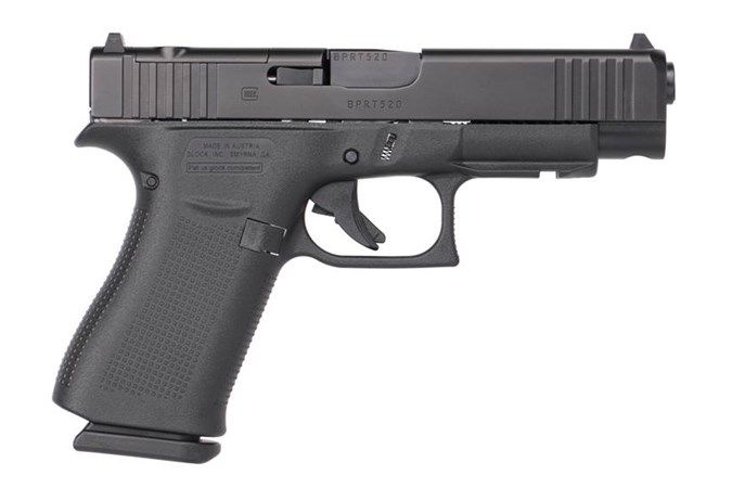 The GLOCK® 48 Semi-Auto Pistol utilizes a single-stacked magazine in 9mm, specifically to make it slim and compact for concealed carry use. The G48 is similar in length and height of the G19, though the width is reduced for enhanced concealability. Internally, the GLOCK 48 employs the same striker fired, short-recoil operated, and locked-breech barrel as all GLOCK pistols. The Safe-Action trigger system makes shooting in stressed situations infallible. The rough textured polymer grip provides a solid hold, and while the G48 is quite concealable, the grip offers shooters enough surface area to acquire a solid grip on the weapon quickly. The slide features a silver nPVD finish, and front and rear serrations. The white-dot front sight and the white-bracket rear sight provide rapid acquisition in dim lighting situations. The GLOCK 48 Semi-Auto Pistol is a reliable, easy to maintain firearm that's perfect for everyday carry. The G48 comes with 2 single-stack 10-round magazines.