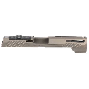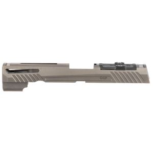 The GGP320 stripped slides offers enhanced aesthetic features, increased grip serrations and an improved coating without compromising function. It is constructed of 416 stainless steel with an optic cut compatible with Leupold DPP, Trijicon RMR, and Sig Romeo1. Included is a G10 cover plate. This version 1 features an aggressive serrations and window cuts. NOTE: X-FIVE BARRELS ARE NOT COMPATIBLE WITH GGP320 SLIDES DUE TO ITS PROFILE. PLEASE USE A STANDARD FULL SIZE 320 BARREL.